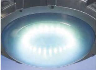 Светильникам для люминесцентных ламп также существуют альтернативные продукты на основе светодиодов. На фото 7 представлен трубчатый светильник со светодиодами. Прозрачная пластмассовая трубка обеспечивает изолирование и герметизацию взрывозащиты типа «d». Cдобавлением светодиодов можно увеличить мощность светового излучения до мощности равной 14Вт люминесцентной лампы. Данная серия светильника пригодна в частности для использования на судах и для освещения путей эвакуации и указательных табличек, а также в труднодоступных местах. Благодаря прочной конструкции и применению высококачественных светодиодов можно говорить о практически не требующих технического обслуживания светильниках. Старые светильники могут быть также модернизированы с помощью светодиодной техники. На фото 8 показан взрывонепроницаемый подвесной
